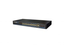 SW1026P menyediakan port 24 10/100Mbps dan 2 Gigabit SFP Slots, yang khusus dikembangkan untuk usaha kecil dan menengah.Port 1-24 mematuhi standar pasokan daya IEEE802.3af dan dapat menyediakan daya saat bertukar data dengan AP, kamera IP, dan telepon IP melalui kabel CAT5.Cakupan power supply maksimum hingga 100 meter.Fitur lanjutan seperti ACL, 802.1X Authentication, Port Security, IP Filtering, Storm control, IGMP Snooping dan IP Source Guard memberi Anda strategi keamanan yang kuat.
